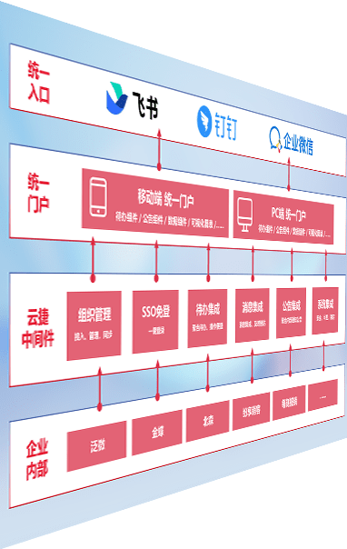 对协作平台提供支持服务,,,支持企业应用与协作平台对接,,,包含组织同步、、、、消息集成、、、待办集成等。。。。支持目前主流的协作平台:钉钉、、、企微和飞书。。。